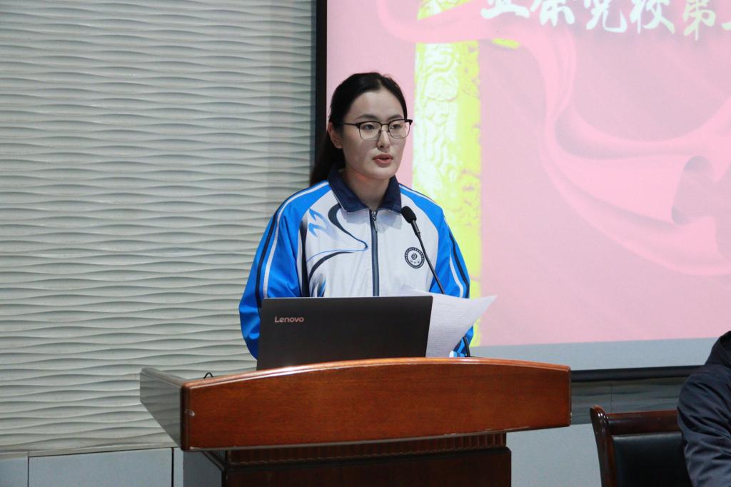 20高职中药学1班高袆焓同学代表全体业余党校学员做出表态,要遵守纪律,按时完成学习任务;时时处处以身作则,发挥先锋模范作用;不断完善自己,积极向党组织靠拢。