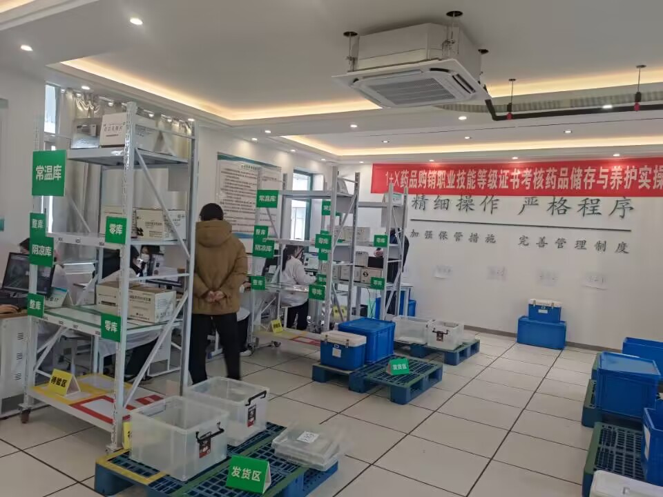 我校作为教育部“1+X”证书制度试点学校,始终遵循学历教育与技能培训相结合的教育理念,在场地设置、设备调试、工作程序、后勤保障等多方面做了充足准备。为确保考评工作公平、公正、顺利进行,在培训评价组织上海医药的监督与指导下,药学技术系精心组织赛事,完成考生信息收集、考生报名、考场安排、物料准备、试题资料准备、考场布置等考前事项。考证主要包括理论知识考核和实践操作考核。理论考核内容涵盖医药基础知识、药学专业知识等,实操考核包括药品服务、药品储存与养活、药品营销三个模块,全面考察学生的综合素质和职业能力。考证过程组织有序、保障到位,考生精神饱满、沉着竞赛,稳定发挥,展现了娴熟的专业技能与奋发向上的精神风貌,考评员恪尽职守、严格考评。
