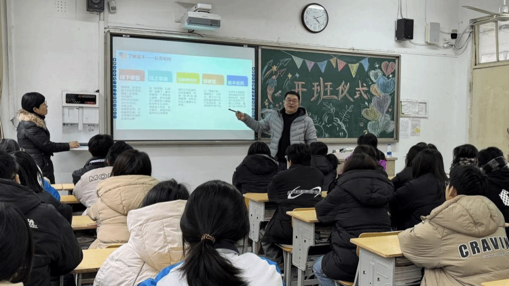 12月18日下午,药学技术系2023级中国特色学徒制益丰班(简称:益丰班)开班仪式在益丰班教室顺利举办,药学技术系主任凡华主持开班仪式,药学技术系副主任王穆光、益丰大药房连锁有限公司营运总经理助理王建、益丰大药房连锁有限公司门管三部人力部助理赵燕、药学技术系学生管理干事王清克、益丰班班主任曹媛及全体同学参加开班仪式。