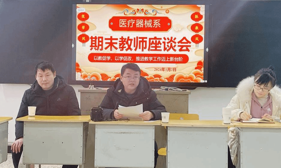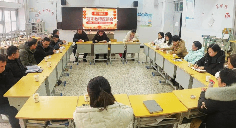 教学工作是学校工作的核心,教学质量是权衡办学水准和效益的重要指标,而学生工作则为教学工作提供了重要的支持和保障,两者互为依存,不可或缺。为全面了解教学运行情况,抓教风、促学风,发现和解决教学与管理中存在的问题,以问题导向推动发展,进一步深化教学改革,提高教学质量。医疗器械系于2024年1月2日召开期末教师座谈会,旨在为教师提供一个交流与分享的平台。通过彼此的交流与学习,进一步提升教学质量,共同为学生创造更好的学习环境。