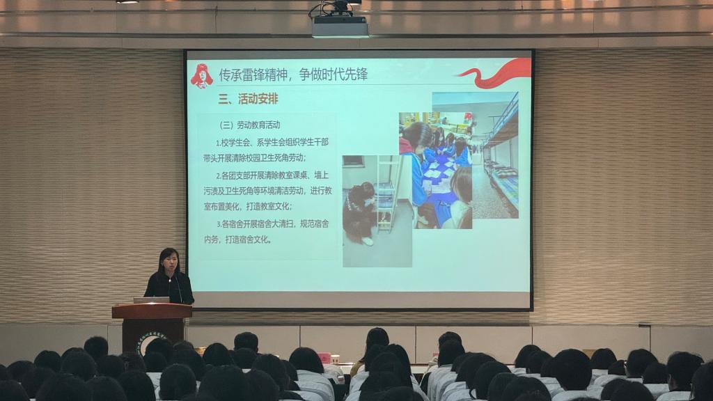 为深入学习贯彻党的二十大精神,丰富新时代青年志愿服务内涵,引领广大团员和青年践行志愿精神,倡导文明新风,2024年3月5日,在第六十一个学雷锋纪念日到来之际,校团委在阶梯三举办“传承雷锋精神,争做时代先锋”主题教育活动启动仪式。校团委王秀杰书记、各系团总支书记及各班级学生干部代表参加仪式。活动由校团委郑欣欣老师主持。