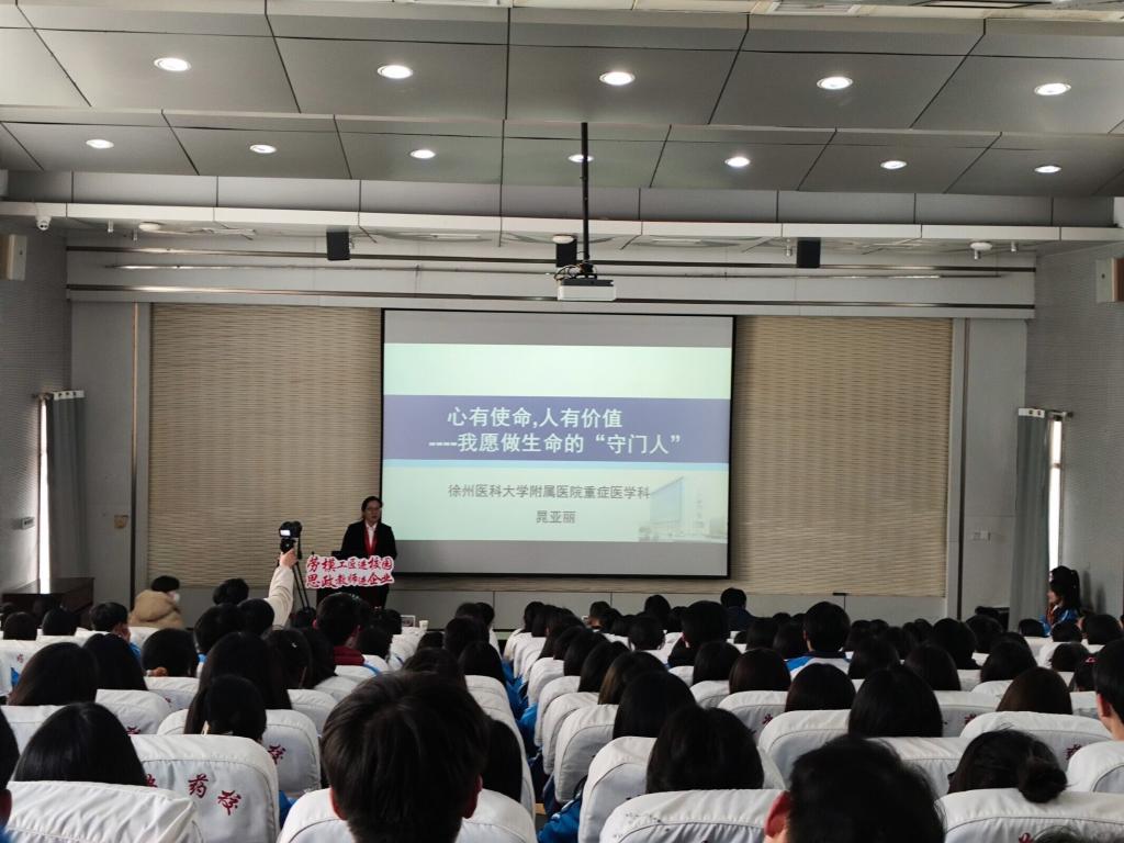 为进一步发挥劳模工匠的引领作用,为大力弘扬劳模精神、劳动精神、工匠精神,帮助学生树立正确的劳动价值观和良好的劳动品质。3月6日下午校工会、妇联与基础教学部、学工处、团委等部门特邀“全国五一劳动奖章 ”、“全国三八红旗手”荣誉获得者(徐州医科大学附属医院重症医学科主任)晁亚丽博士走进药校,与现场200余位师生共同分享她援疆归来再援鄂,抱着治病救人的初心,不断精进专业、锤炼医术、立足岗位、攻坚克难,在平凡岗位上谱写奋斗人生的感人故事,用劳模精神示范引领校园文化,以榜样力量激发学生的爱国情、强国志。市总工会副主席潘华,校党委书记高侠,副校长佟光进,市总工会宣传教育和网络工作部部长王欢,市总工会宣传教育和网络工作部副部长李东丽,工会副主席刘雷出席活动,李东丽主持活动。
