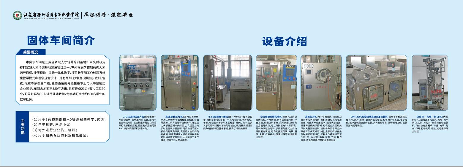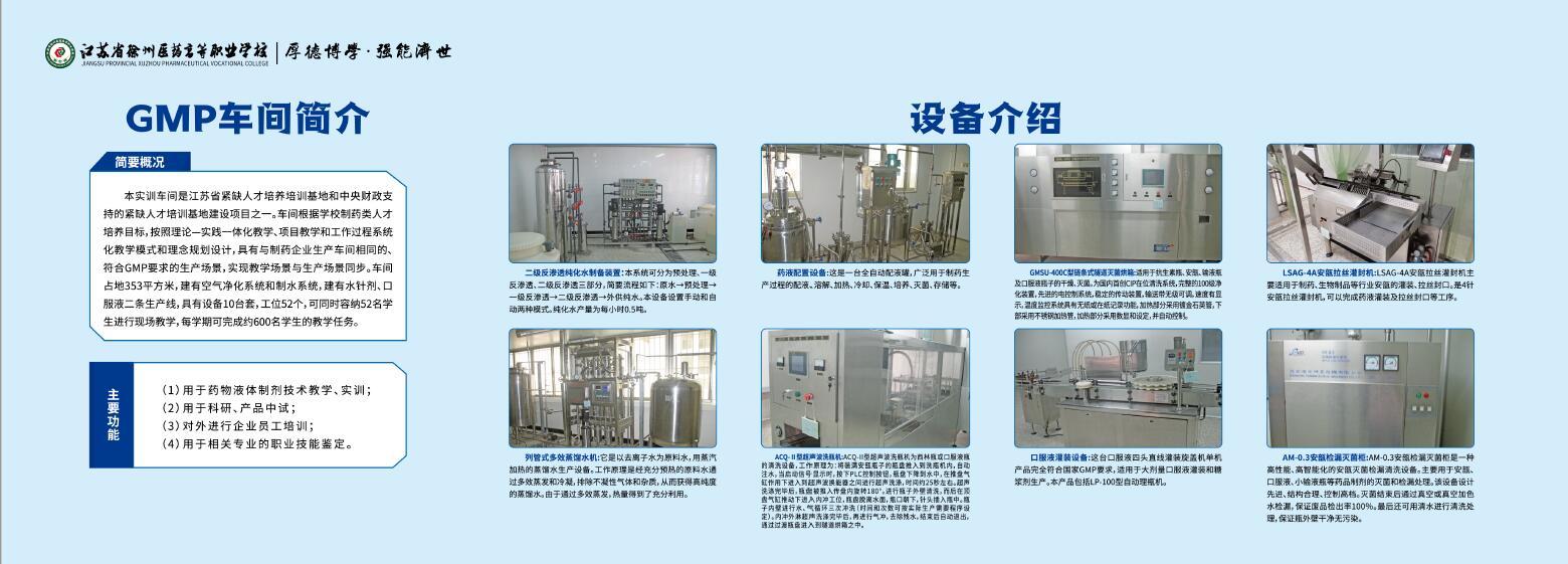 近期,实训中心从建设绿色安全实验室、营造优良的安全文化育人环境高度出发,认真组织,精心做好规划、设计制作等工作,完成了实验室文化环境提升建设。建设内容主要包括实验室标牌、安全提示警示牌、规章制度牌、设备操作规程、实验室简介、特色文化氛围展板等更新升级,同时设有专业技术发展史、工匠精神、安全生产、环境保护等主题展板,打造出特色的医药实训基地文化育人环境,营造出浓郁的文化育人氛围。使学生走进实训基地,就能受到浓郁的文化环境熏陶,彰显专业特色文化。