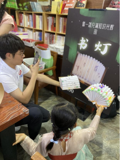一盏书灯,照亮青春。除了学习写作、阅读书籍外,同学们还动手参与了书灯制作。在书店工作人员的指导下,同学们围坐在一起,充分发挥创造力,从设计构图,到绘画黏贴,每一盏灯都充满独特的艺术魅力。当一盏盏的书灯陆续被点亮,现场的氛围也变得温馨而美好,书灯的光芒照亮了每个人的脸庞,同时也照亮了同学们心中的阅读之路。