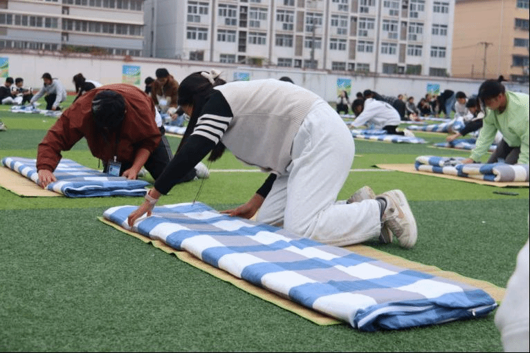 为了丰富学生课余生活,优化育人环境,充分展示我校2024级新生风采,11月13日下午学生工作处在操场举办了“有‘被’而来,‘叠’出风采”叠被子大赛。