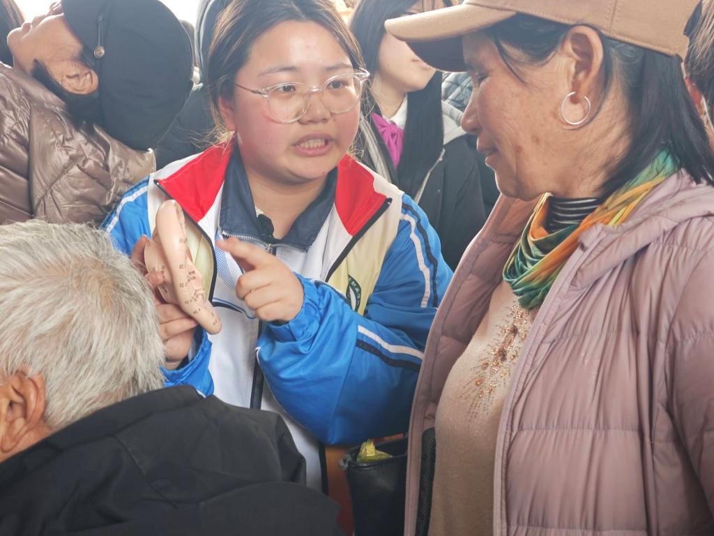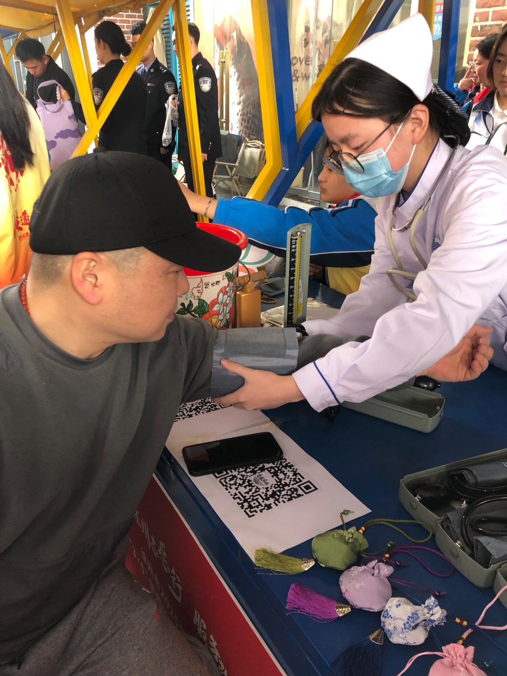 活动现场,我校师生以开展非遗漆扇制作、耳穴埋籽、血压检测等志愿服务内容,为社区居民带来丰富的文化体验与贴心的健康关怀。漆扇制作体验区人潮涌动,志愿者们向市民们详细介绍漆扇的历史渊源、制作工艺,指导现场市民亲身体验漆扇制作,一把把精美的漆扇展现着中华优秀传统文化的魅力。开展文化体验的同时,护理专业的志愿者们也充分发挥专业优势,在活动现场开展血压测量、耳穴埋籽等医疗志愿服务。健康知识的耐心讲解、耳穴埋籽的养生体验、人体血压的贴心测量,传统香包的暖心赠送.......志愿者们用行动传递着温暖与爱心。
