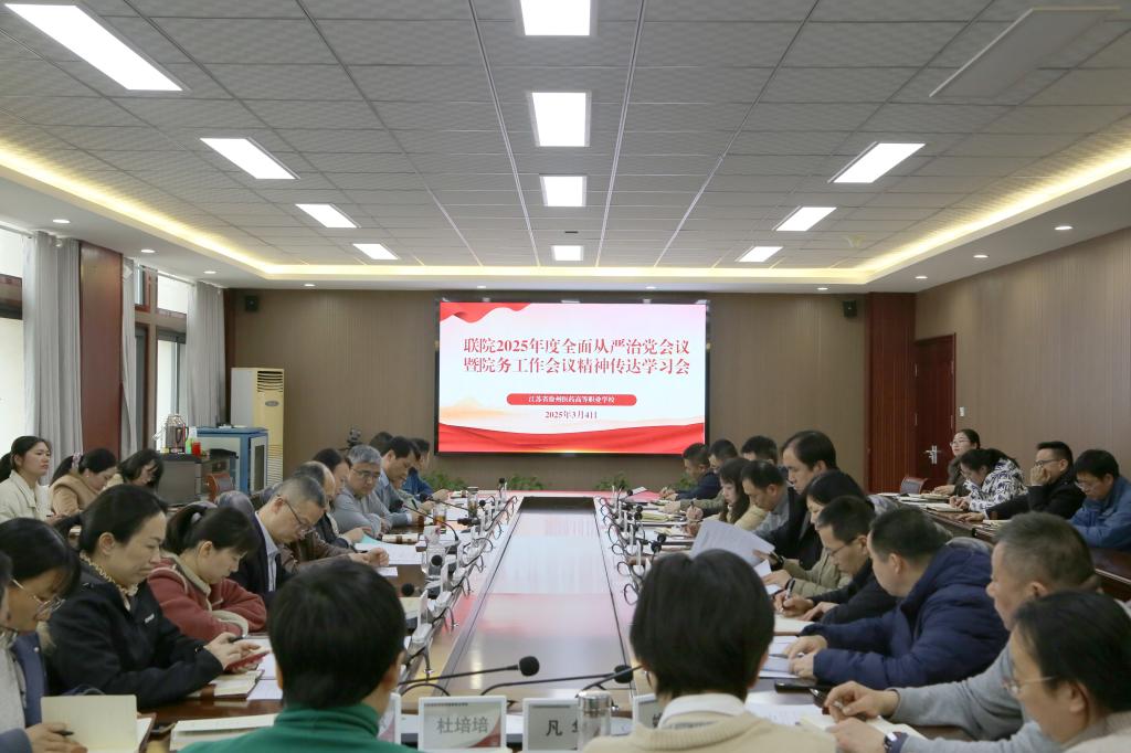 会议传达学习了省教育厅副厅长、一级巡视员曹玉梅,省纪委监委派驻省教育厅纪检监察组组长、省教育厅党组成员、省委教育工委委员沈辉,学院党委书记刘克勇和院长王伟的讲话精神,部署落实《江苏联合职业技术学院2025年工作要点》。