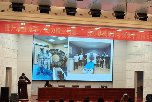 讲座伊始,医疗器械系景维斌主任致欢迎辞,对张旭总监的到来和韦理想学长重返母校表示热烈的欢迎,并对学生们提出了期望,希望他们能够把握这次学习机会,为未来的职业生涯做好准备。