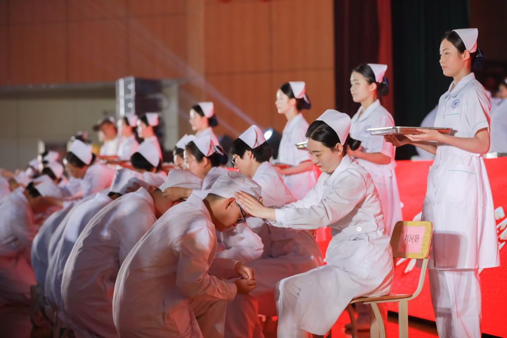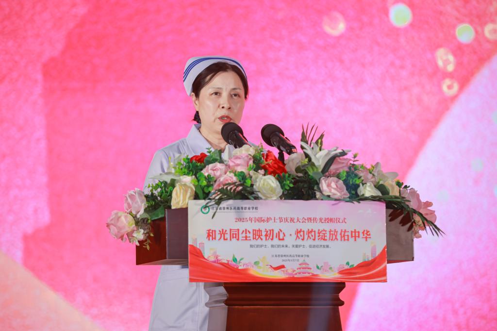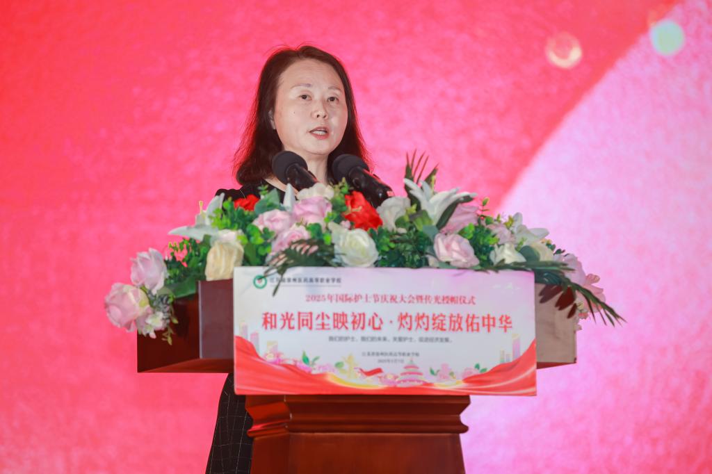 陈保云理事长送上谆谆寄语。她指出,接过象征爱心、耐心与奉献的护士帽,就意味着即将正式踏入护理领域的大门,即将肩负守护生命、减轻病痛、传播健康的神圣职责。她勉励护生们持续学习、勇于创新、敢于担当,以纯洁高尚的医德风范,构筑和谐的医患关系,做好人民群众信赖的健康卫士。