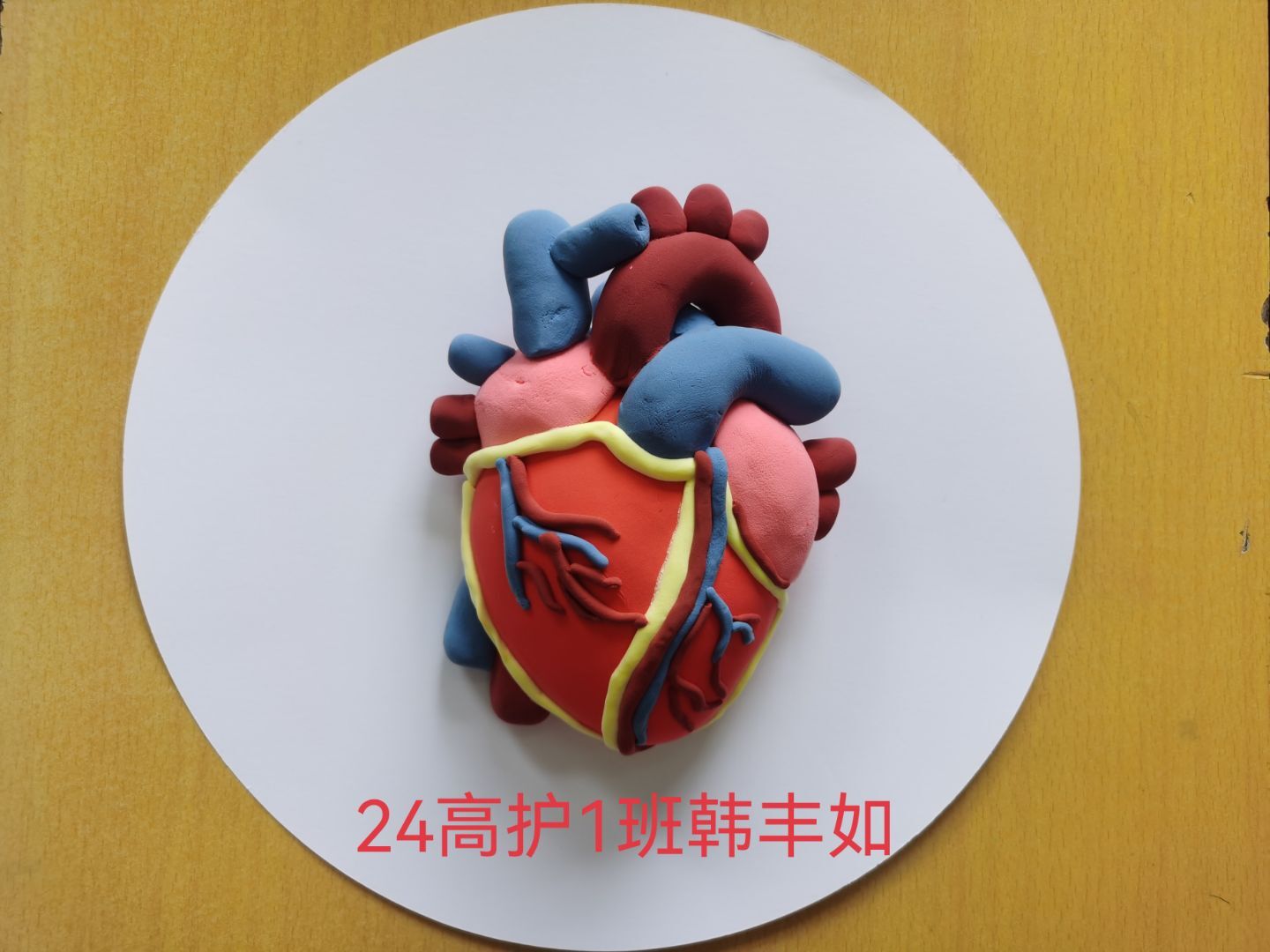 在粘土制作心脏模型环节,同学们充分发挥创造力与动手能力。他们根据课堂所学的心脏解剖知识,精心雕琢每一处细节,从心房心室的形态到血管的走向,都力求精准呈现。小小的粘土在同学们手中逐渐“活”了起来,一个个栩栩如生的心脏模型不仅是同学们艺术创作的成果,更是他们对专业知识深刻理解的体现。通过这种方式,同学们将理论知识与实践操作紧密结合,在提升专业技能的同时,也增强了对护理工作的责任感和使命感。