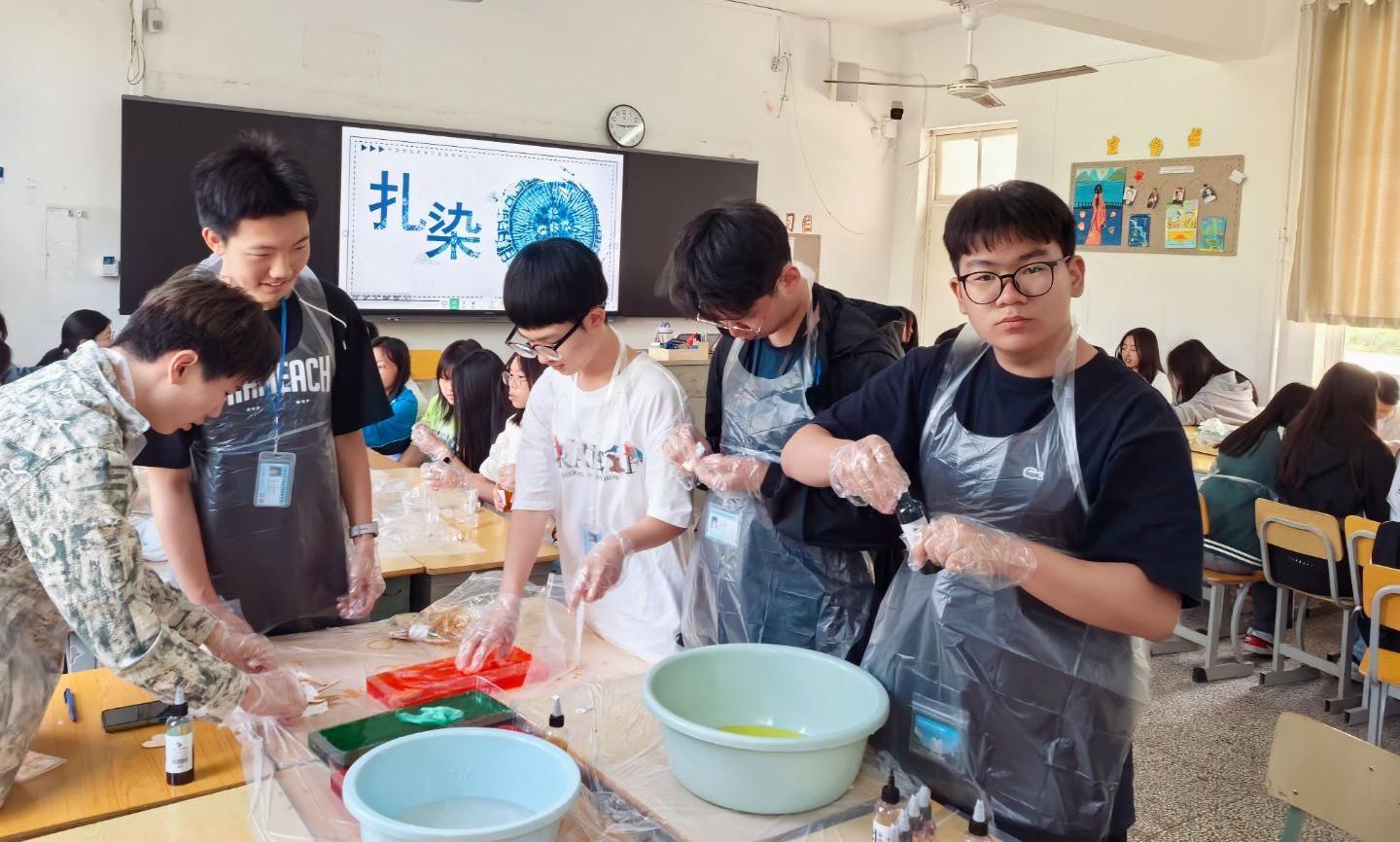 扎染课堂则充满了色彩与创意。同学们挑选心仪的布料,运用捆扎、染色等技巧,制作出独一无二的扎染作品。在这个过程中,他们不仅了解了传统扎染工艺的历史与文化内涵,更在实践中锻炼了耐心与专注力。当一块块普通的白布经过自己的双手,变成色彩斑斓、图案精美的艺术品时,同学们感受到了劳动带来的成就感和满足感,也激发了对传统文化的热爱之情。