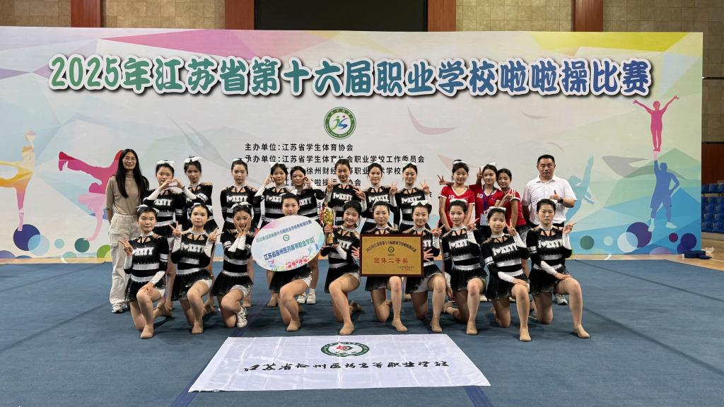 2025年6月4日至5日,由江苏省学生体育协会主办的第十六届职业学校啦啦操比赛在徐州财经高等职业技术学校火热开赛。来自全省27所职业院校的600余名运动员齐聚彭城,以活力四射的舞姿和精湛的技艺展开巅峰对决。我校灵枢跃动啦啦操队在校领导、部门领导的支持下,王清克、秦梅两位教练的带领下,最终斩获自由舞蹈啦啦操单项冠军与团体二等奖两项殊荣,荣誉的背后,是师生团队近60天的拼搏与坚守。自组队以来,团队日常遵循科学制定的“三阶训练法”,队员们以惊人毅力突破极限,队长陈艺蕾和全体队员膝盖虽然磕的青紫仍坚持带伤训练;副队长张子君和张雅慧为攻克侧手翻和屈体分腿跳,每天加练至晚上九点,此次获奖,不仅是对队员们竞技水平的肯定,更是对我校“以赛促学、以体树人”宗旨的生动实践。我校将以此次比赛为契机,让更多学子在体育竞技中锤炼意志品质,在团队协作中领悟体育精神,在青春舞台上绽放职教风采!