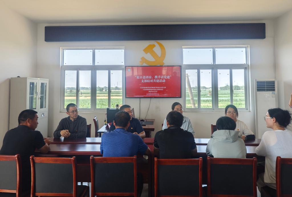 活动当天,办公室党支部带着绿茶、矿泉水等解暑物品来到共建党支部,给烈日下辛勤工作奋战在夏收一线的基层工作人员送上清凉。“天气太热,大家辛苦了!”在党建工作座谈会上,双方党员就党组织建设和结对共建等内容进行了深入交流,充分交换了共建意见。