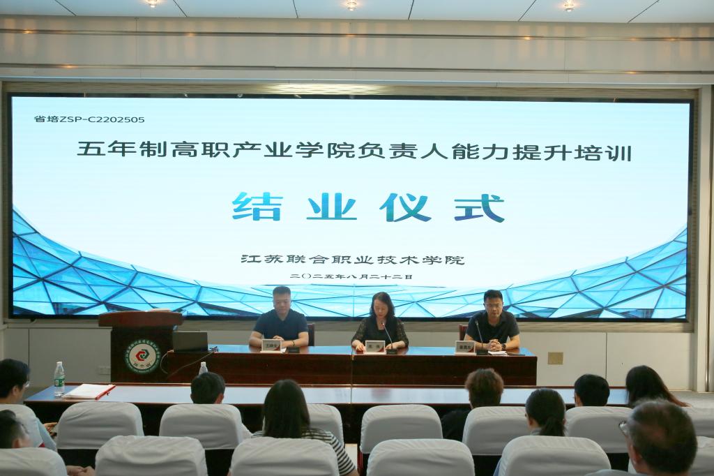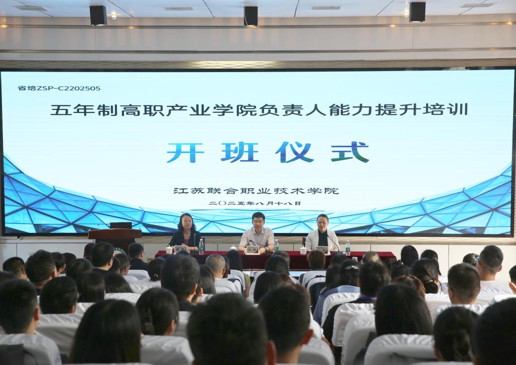 8月18~22日,2025年江苏省职业院校教师素质提高计划培训项目——“五年制高职产业学院负责人能力提升”培训班在我校举行,来自全省77名五年制高职高水平产业学院负责人及骨干教师参加培训,江苏联合职业技术学院徐州片区各分院和办学点系主任、专业负责人等进行了旁听。江苏联合职业技术学院党委书记、院长王伟,副院长金玉,徐州医药分院高侠校长等出席开班仪式。