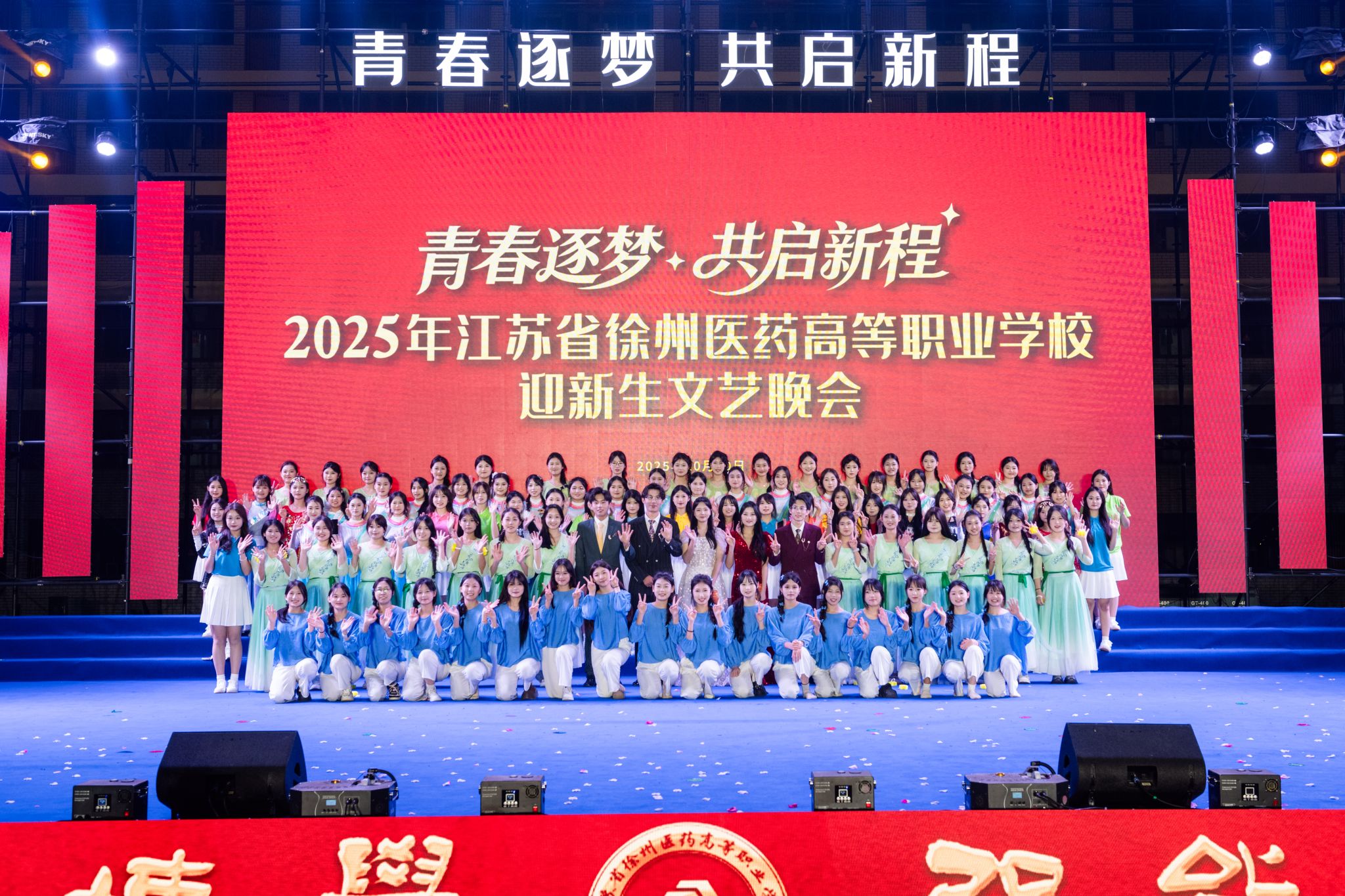 星辰共闪耀,逐梦启新程。为凝聚药校新生力量,展示校园文化成果,激励师生砥砺前行,10月10日晚,我校2025年迎新生文艺晚会在东湖校区璀璨启幕。徐州经济技术开发区科技教育局书记王志升,徐州市大庙街道党工委书记刘四宝、教育卫生科主任张宝茹,校党委书记吴明,校长高侠,副校长袁龙、陈志东、佟光进等领导嘉宾,与两千余名师生代齐聚聚东湖校区,学府校区师生则通过观看直播的方式同步参与,在歌舞交融、光影流转间,现场师生代表与线上观众共同定格了一个充满艺术氛围与青春活力的难忘之夜。