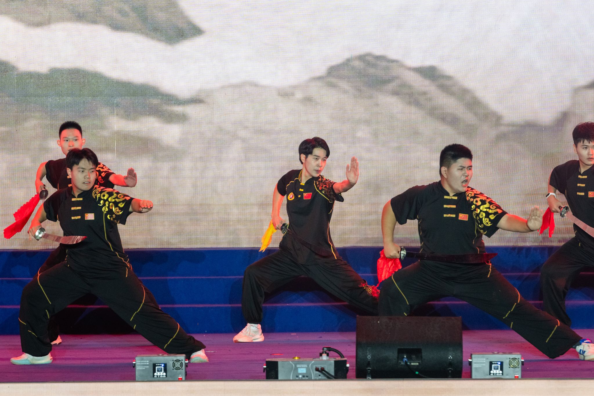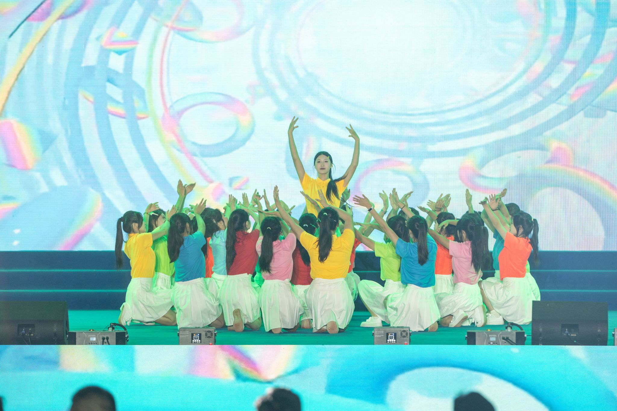 演出围绕家国情怀、中华优秀传统文化与青春活力展开,涵盖歌伴舞、器乐演奏、武术表演、诗朗诵等多种表演形式,亮点纷呈。既有《美丽中国》《天地龙鳞》《铭记》传递家国深情,也有乐器演奏《鼓瑟筝鸣·释风华》、四大名著影视剧歌曲联唱《经典咏流传》、武术表演《武冠风华》等展现中华优秀传统文化魅力,舞蹈《雨涧春行图》《烟雨鎏金》尽显艺术典雅之美,节目《是妈妈是女儿》《亲爱的你啊》动情演绎,催人泪下,更有《奔跑的青春》《我和2035有个约》《淋雨一直走》《青春派对》《天外来物》等尽显学子蓬勃朝气。教师、家长、优秀毕业生、在校学生同台参与的诗朗诵《逐梦起航》凝聚多方期许,引发全场共鸣。当校歌《为梦为爱》的旋律响起,全场沸腾,师生们高声合唱,在激昂的青春旋律中,晚会落下帷幕。