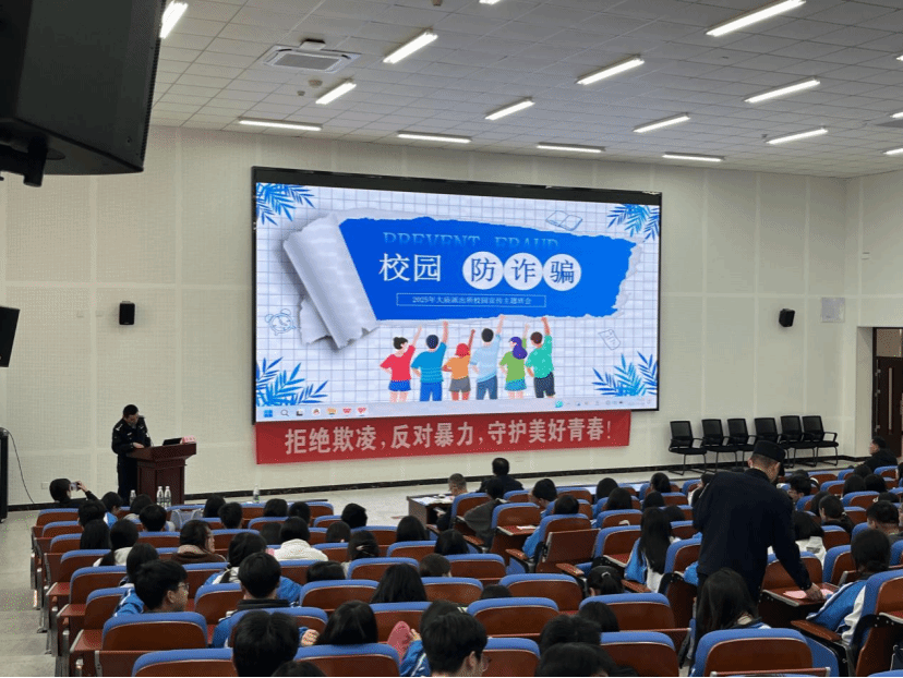 讲座中,盛丹醒警官以“对校园欺凌说‘不’”为主题,结合真实案例,深入浅出地讲解了校园欺凌的表现形式、危害后果及应对方法。张明才警官聚焦防范电信网络诈骗,通过分析近期高发的刷单返利、冒充客服、游戏装备交易等诈骗手段,揭示了诈骗分子的常用套路。