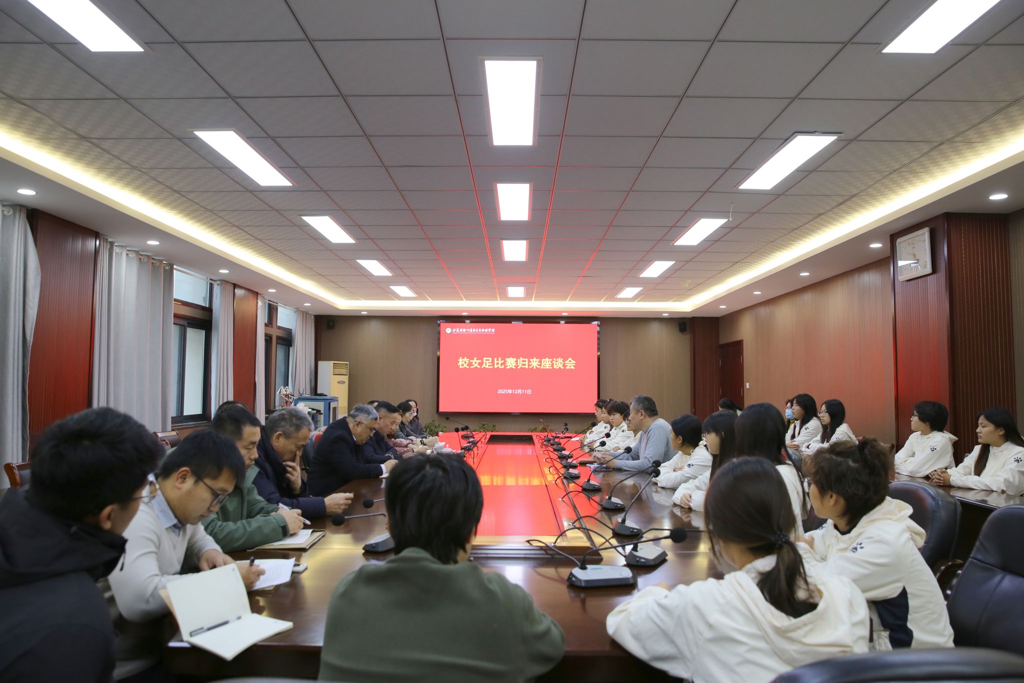 为进一步总结学校女子足球队建设经验,推动体育育人工作走深走实,2025年12月11日,我校组织召开女子足球队座谈会。学校党委书记吴明、校长高侠、副校长袁龙、基础部主任张军、副主任曹媛、体育教研室全体教师、足球队教练汪鹏飞及全体女足队员参加座谈。会议围绕球队三年来的成长历程、育人成效与未来发展以及我校的体育发展展开深入交流。