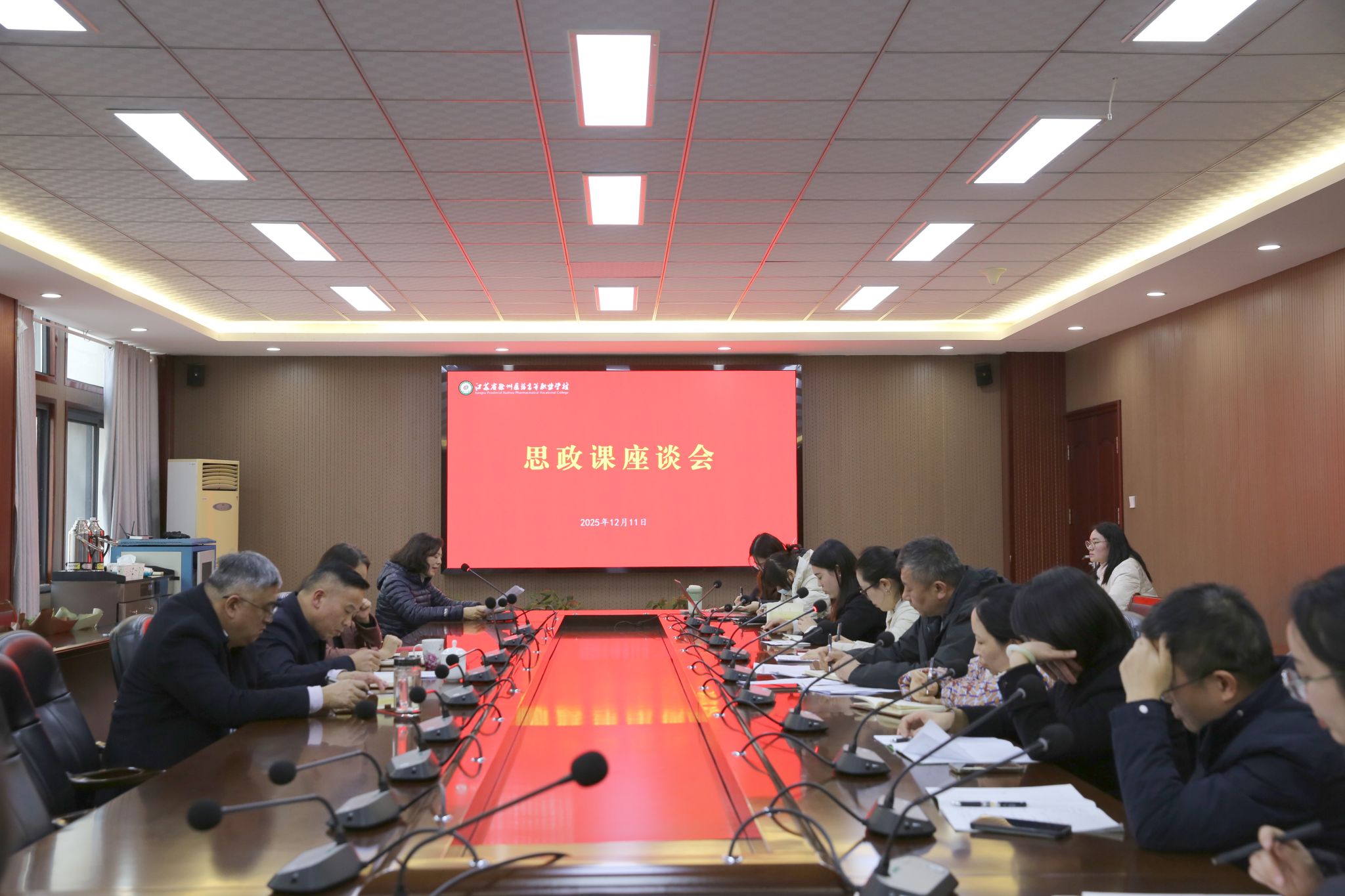 为落实立德树人根本任务,进一步提升思想政治理论课的教学质量与育人实效,推动思政课程与课程思政同向同行、协同育人,12月11日,学校在第一会议室召开思政课教师座谈会,党委书记吴明、校长高侠、副校长袁龙出席会议并讲话,基础教学部(马克思主义学院)主任张军主持会议,思政教研室全体教师参加座谈交流。