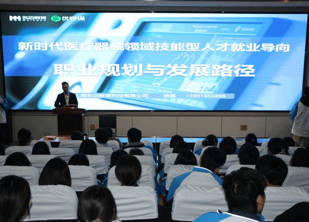 随后,杨磊总经理为智能医疗装备技术、医用电子仪器技术、医疗器械维护与管理等三个专业的学生作了《新时代医疗器械领域技能型人才就业导向:学生职业规划与发展路径》的专题讲座。杨磊总经理结合行业发展趋势和企业用人需求,从医疗器械行业市场现状、技能人才核心素养要求、职业发展晋升通道等方面进行深入解读,为在场学生提供了清晰的职业规划指引。