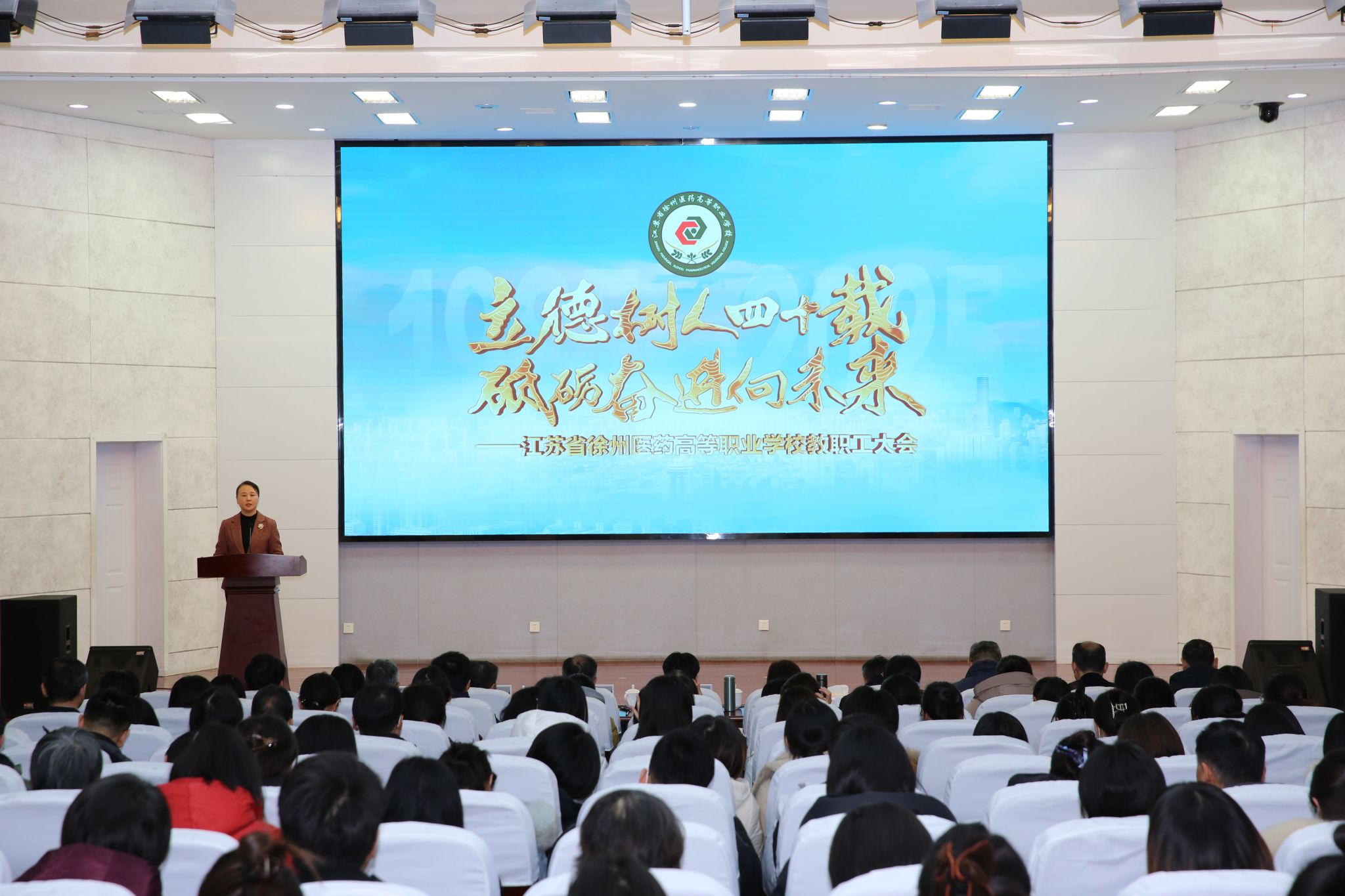 12月26日,江苏省徐州医药高等职业学校在报告厅隆重召开以“立德树人四十载,砥砺奋进向未来”为主题的全体教职工大会,总结40年办学治校成果,擘画未来发展蓝图。省药监局党组书记、局长田丰发来贺信,党组成员、副局长陈和平,二级巡视员姚志宏,机关党委专职副书记杨静怡,四级调研员黄开美出席大会,大会由学校党委副书记、校长高侠主持。