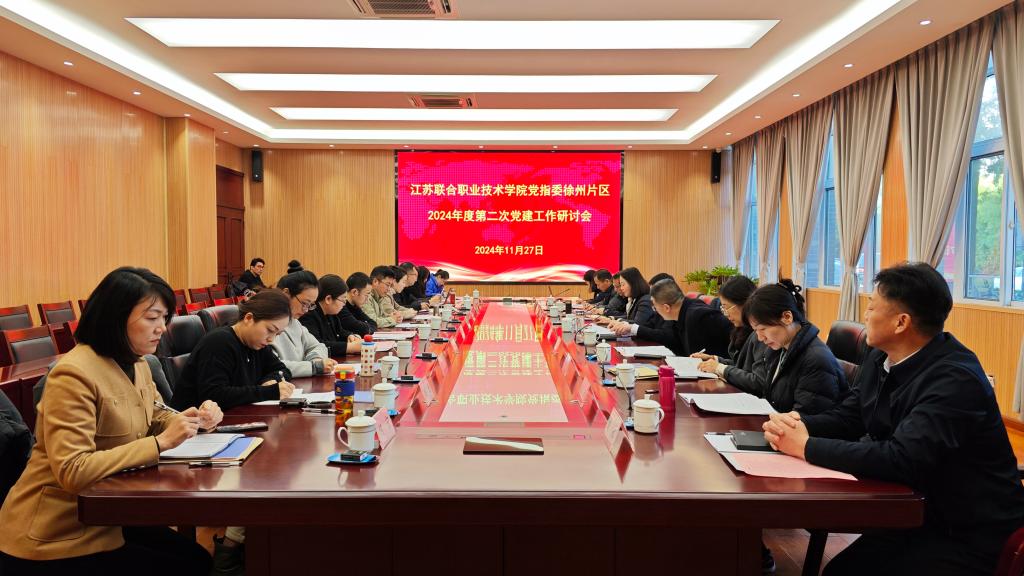 11月27日,江苏联合职业技术学院党的建设工作指导委员会徐州片区2024年度第二次党建工作研讨会在徐州经贸分院顺利召开,联院党指委委员、徐州医药分院党委副书记、校长高侠主持会议。徐州经贸分院党委书记、校长宋思运,党委委员、副校长刘永出席会议,徐州片区各办学单位党建业务分管校领导、业务部门负责人、党支部书记及部分教师代表参加了会议。