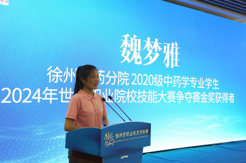 学生代表魏梦雅以“用中药秤称量青春,用煎药壶煮沸理想”的生动讲述,展现了职教学子对技能的精益求精,诠释了“三百六十行,行行出状元”的职教精神。