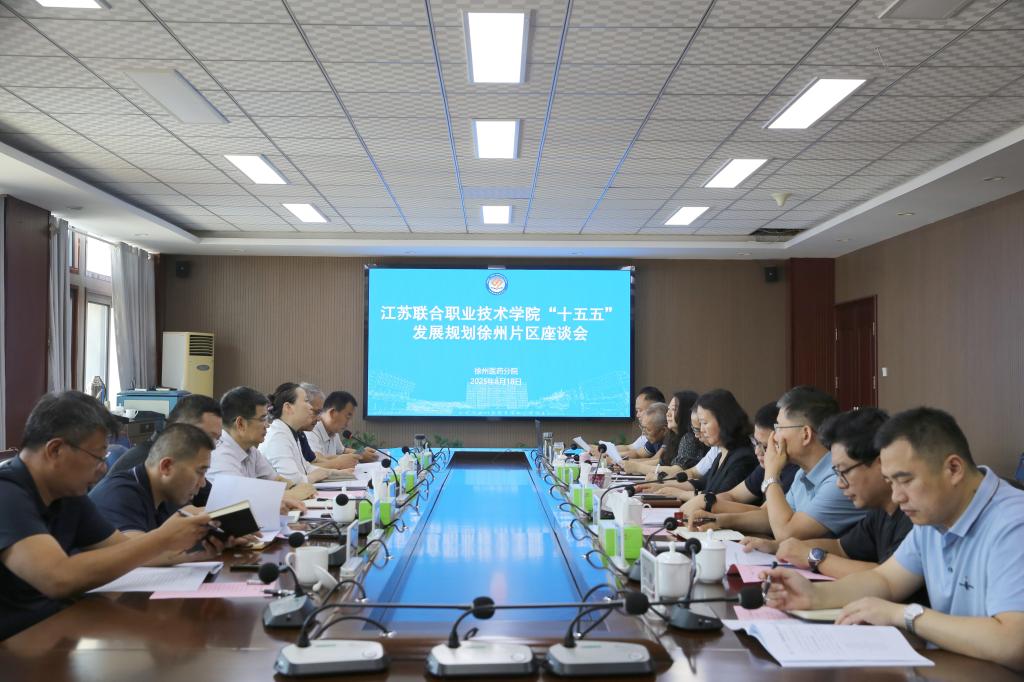 8月18日,江苏联合职业技术学院党委书记、院长王伟,党委委员、副院长金玉和教学管理处的相关同志赴徐州片区组织开展学院“十五五”发展规划调研。上午,调研组在徐州片区组长单位徐州医药分院召开座谈会,徐州片区13家办学单位校领导参加了座谈。