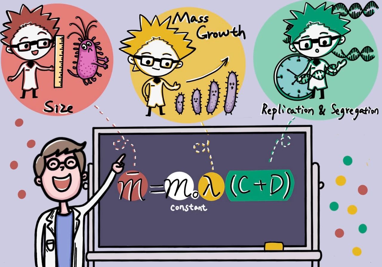 早在上世纪50年代,美国科学家Schaechter等发现细菌细胞长得越快,细胞就越大。更为重要的是,该研究突破性地用一个数学公式描述了细菌细胞生长速度和细胞大小之间的定量关系,即是说只要知道细胞生长快慢,就可以准确推断出细胞大小,反之亦然。这一公式后被称为"SMK生长法则"。