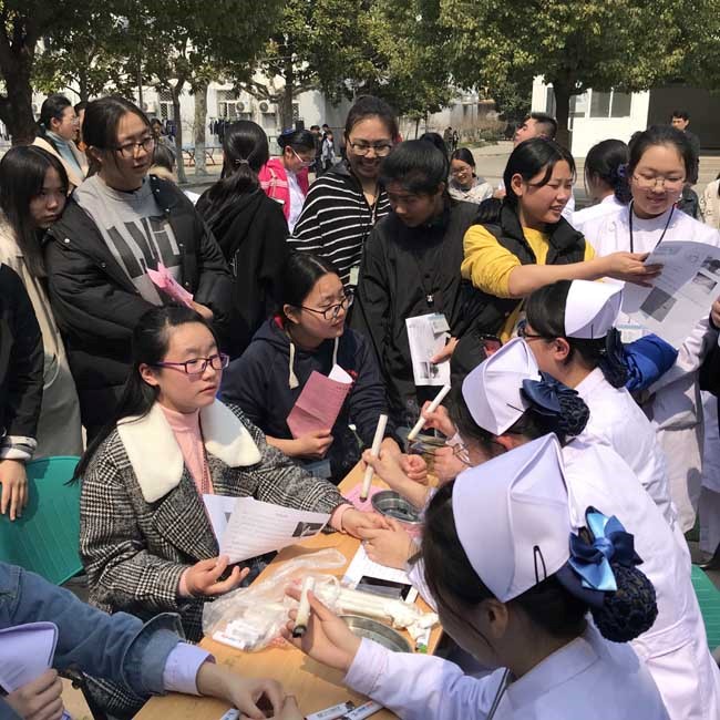 活动期间,系爱心诊所协会,杏林养生协会,护理技能协会的指导老师带领协会的志愿学生,义务为校园师生测量血压,普及心肺复苏急救技术,现场演练和讲解心肺复苏的操作要领,并邀请师生体验学习。同时,宣传了传统的中医知识,现场演示了耳穴埋籽,艾灸等操作,吸引了广大师生驻足参与。