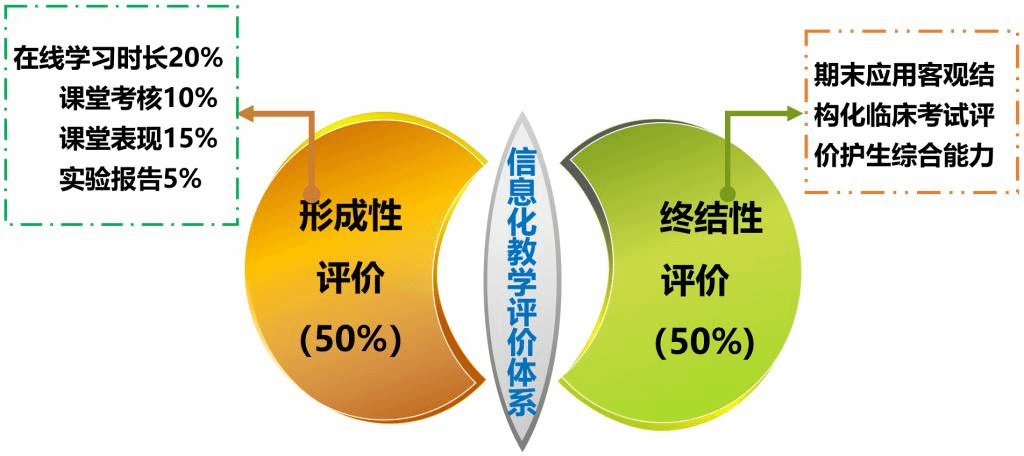 建立“形成性评价(线上)和终结性评价(线下)相结合的” 信息化评价体系。