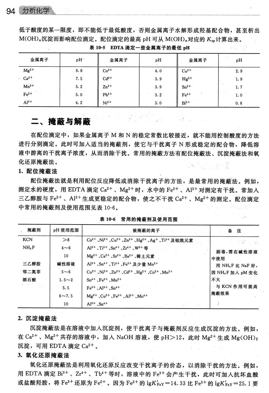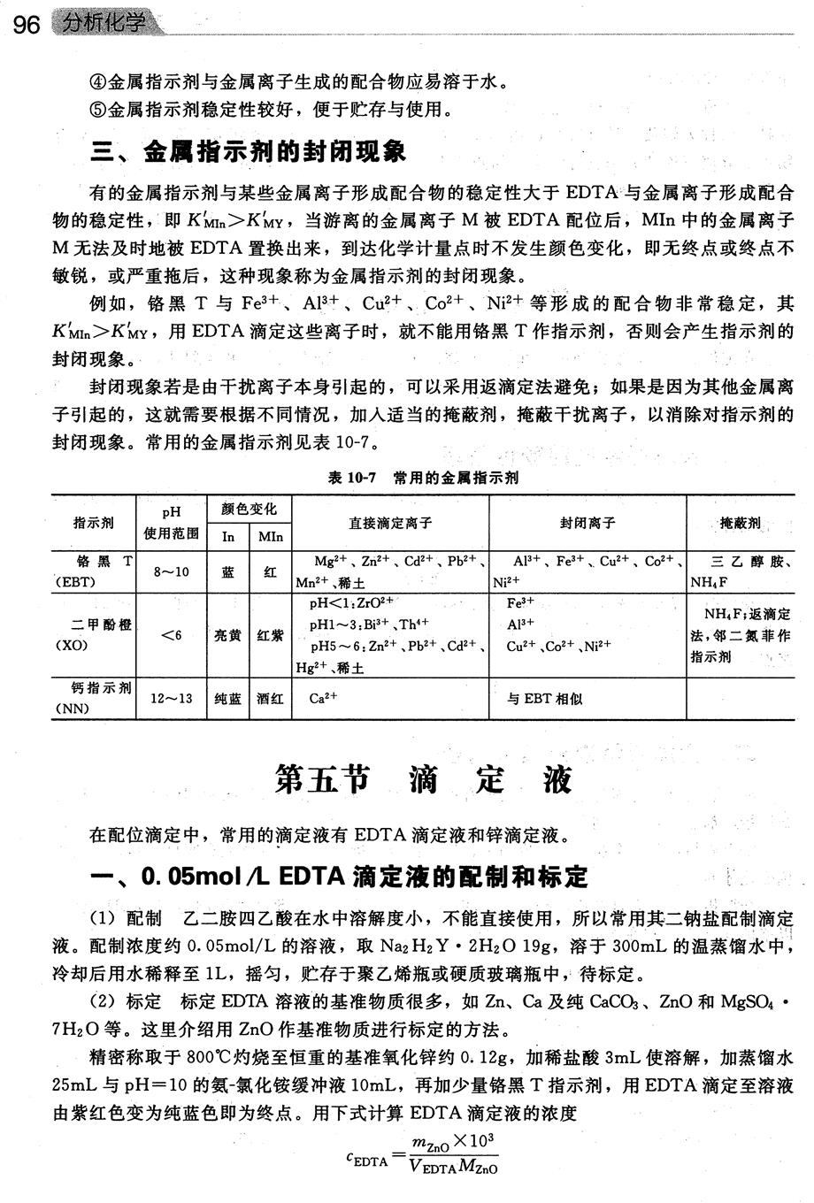难点:1金属指示剂的变色原理; 2.金属指示剂的封闭现象。 |