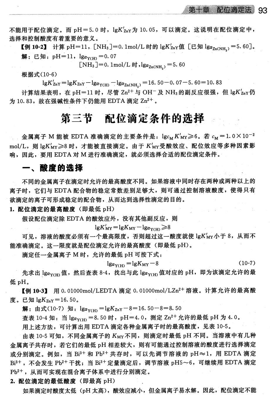 学生通过前期所学知识,再根据书中内容通过讨论总结测定水的总硬度的PH值要求 |