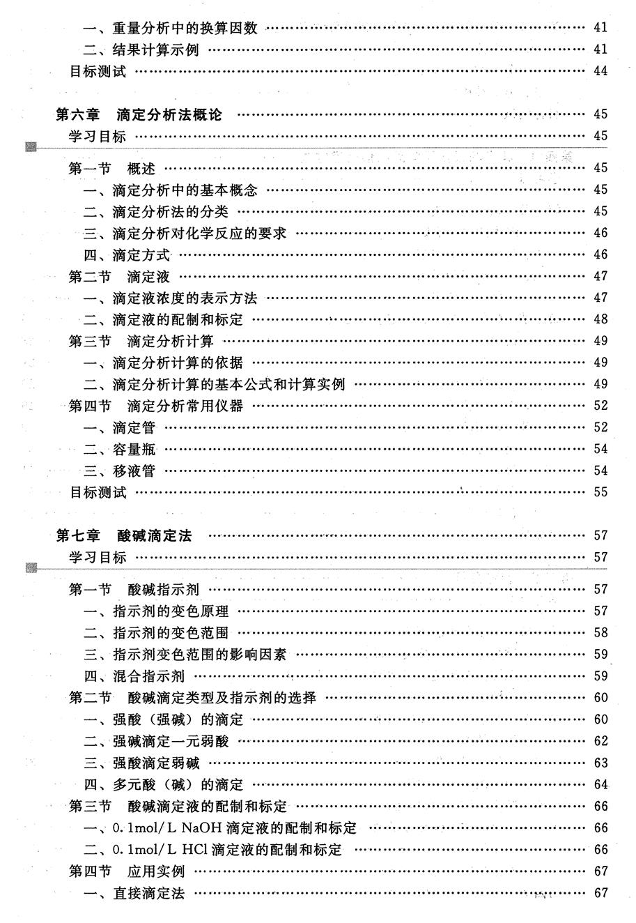 教材:化学工业出版社,石慧、刘德秀主编《分析化学》,高职高专十二五规划教材。 特点:本教材内容编排合理,由浅入深、循序渐进,降低了分析化学理论的难度和要求,知识面适当放宽,注重与今后实际工作的有机结合,具有“简化基础理论,侧重知识的应用”的特点。 不足:本教材虽附有实验内容,但实验内容比较简单,本教材缺少对于具体操作的规范教程,需要在教学中加以补充。 教材处理:配套使用我校精品课程组编写的教材《分析化学实验》,有效的弥补了不足。 |