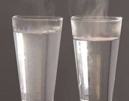 观察、对比两杯水;观察图片 自来水烧开可形成水碱 有白色沉淀产生 对纯化水在日常生活中和药物分析中的用途采用“头脑风暴”发表自己的看法 |