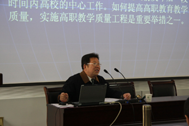 受我校邀请,江苏省高职教育研究会副秘书长、江苏联合职业技术学院教学指导委员会顾问、职教专家姜振鹏教授到学校指导工作。3月5日上午8:30,姜教授作了《以精品课程建设为抓手,切实提高高职教育教学质量》的主题讲座。王质明副校长、高侠副书记、崔福军副校长、袁龙副校长及学校全体中层干部、教研室主任、专业负责人及部分教师参加了讲座。