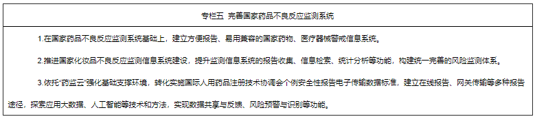 3.建立健全药物警戒体系。健全国家药物警戒制度,落实药品上市许可持有人警戒主体责任。开展医疗器械警戒研究,探索医疗器械警戒制度。提升各级不良反应监测评价能力,探索市县药品不良反应监测机构由省级药品监管部门统一管理,构建以不良反应监测体系为基础的统一药物警戒体系和医疗器械不良事件监测体系。贯彻落实药物警戒质量管理规范,推进建设药品不良反应、医疗器械不良事件监测哨点,加强对药品不良反应聚集性事件的分析、研判、处置,持续推进上市后药品安全监测评价技术的研究与应用。积极探索开展主动监测工作。