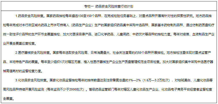 2.严格生产环节监管。严格监督执行药品、医疗器械、化妆品生产质量管理规范,对疫苗、血液制品重点生产企业开展检查和巡查,持续开展境外检查。坚持以问题为导向制定实施抽检计划,重点加强对国家组织集中采购中选品种、通过仿制药质量和疗效一致性评价品种、无菌和植入性医疗器械、儿童化妆品的检查和抽检。
