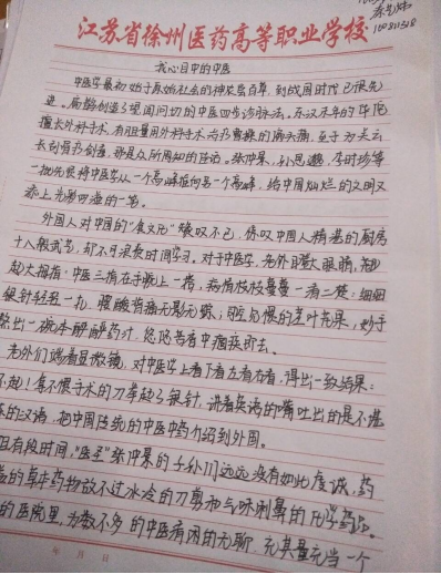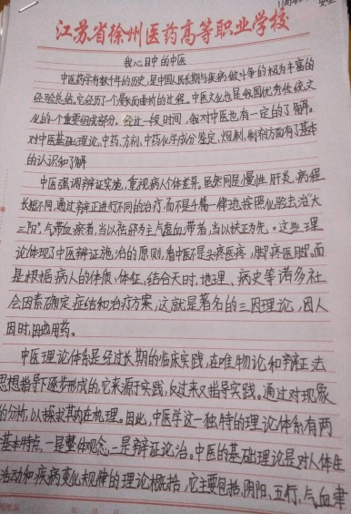 在本次活动中我们看到了每位同学们的努力成果,让同学们充分的了解中医文化,也让同学们的硬笔书法得到了充分的展示。他们用最简单的方法体现出中医的的文化,呼吁同学们努力把中医文化发扬光大。