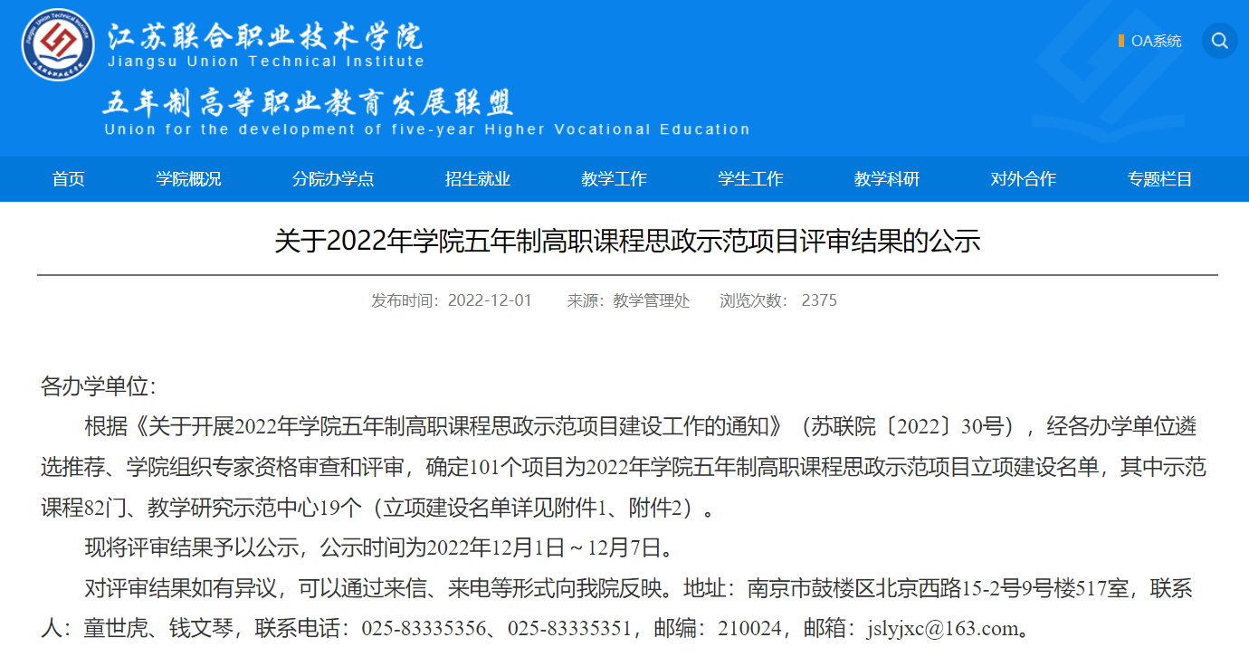 近日,江苏联合职业技术学院发布《关于2022年学院五年制高职课程思政示范项目评审结果的公示》。公示显示,工作室成员王峥业老师主持创建的联院医药类专业课程思政教学研究中心被立项。这是我校长期以来扎实推进专业课程思政教学工作的重要阶段性成果。该研究中心成立于2020年12月,在校领导的有力指导下,团队成员团结协作,积极开展以课程思政为核心的课程建设。近年来我校教师共主持思政专项课题12项,建设课程思政示范课6门,4个课程思政案例在联院比赛获奖。相信在医药类专业课程思政教学研究中心成立后,专业课教师能立足我校实际情况,继续扎实推进课程建设,取得更大的成果。