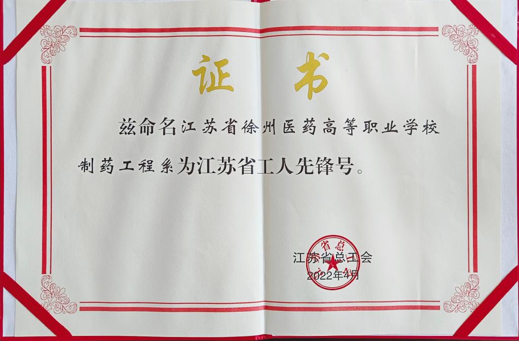 “五一”前夕,我校制药工程系被江苏省总工会授予“江苏省工人先锋号”。