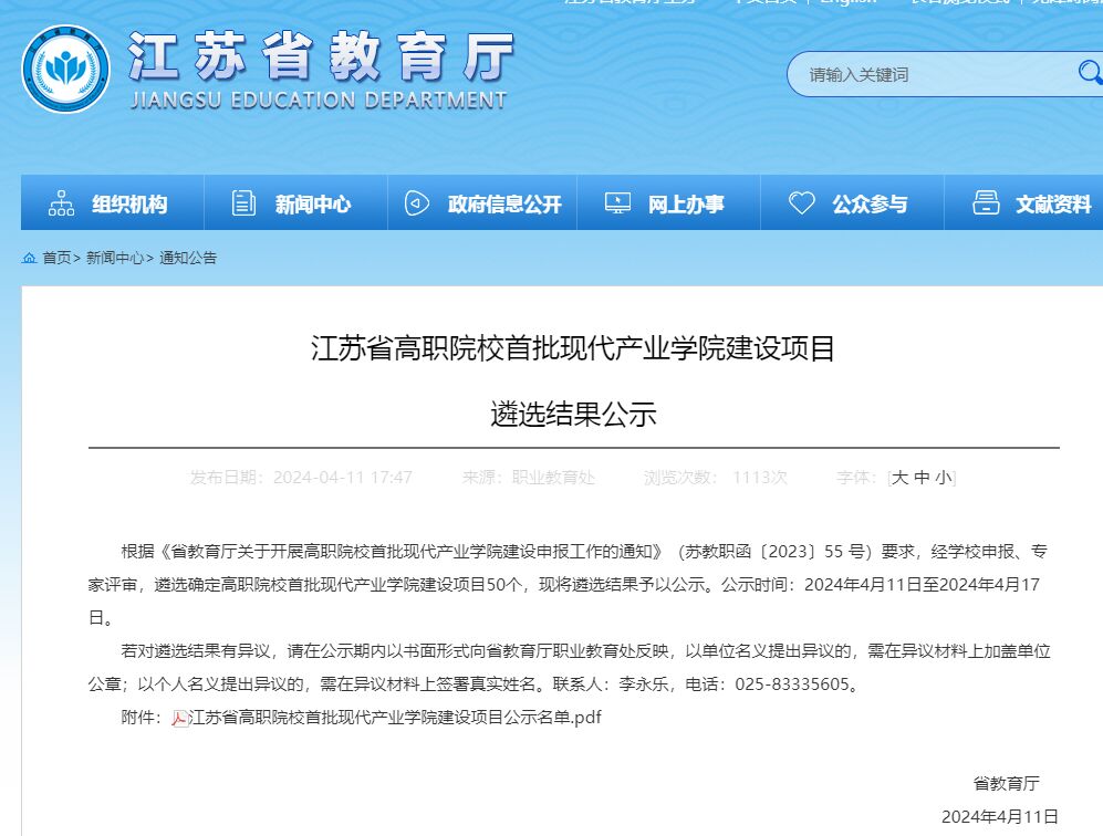 为深入推进职普融通、产教融合、科教融汇,积极探索省域现代职教体系建设新模式,主动服务现代化产业体系建设,江苏省教育厅经研究决定开展高职院校首批现代产业学院建设申报工作。
