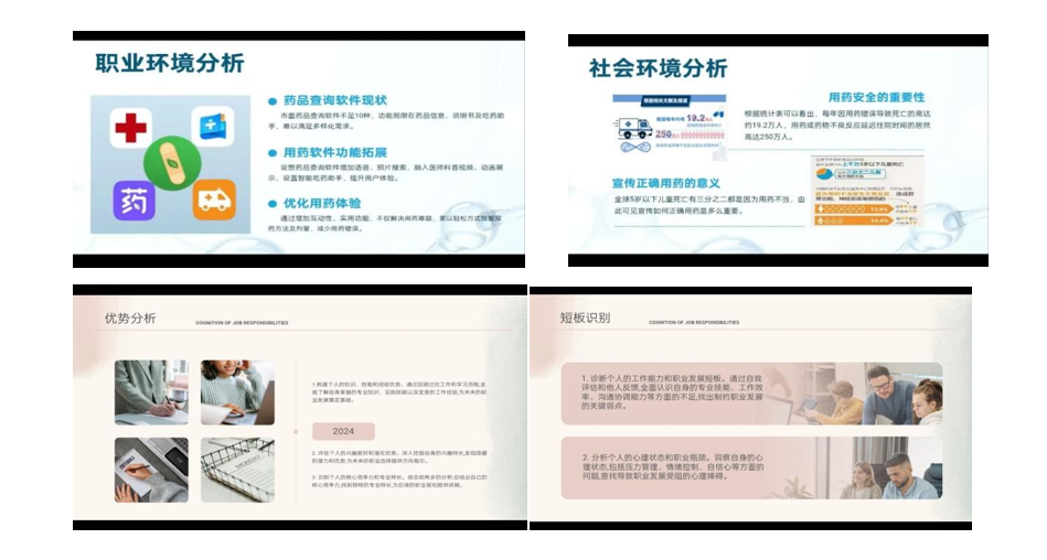 本次活动主要是去引导同学们提前思考未来职业方向并制定合理规划,并且面向药学技术系全体同学展开,活动形式为线上征集作品。许多作品展现了同学们对未来职业的规划和方向。
