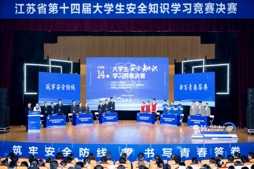 12月28日下午,江苏省第十四届大学生安全知识学习竞赛决赛在南京师范大学举行。本次竞赛历经校内选拔赛、分区初赛、全省复赛层层筛选,本科组、专科组、中职组各6支代表队晋级决赛。决赛设置必答题、抢答题、演讲、应急救护技能展示等多个环节,涵盖国家安全、网络安全、消防安全等多领域知识,全面考验选手综合素养。