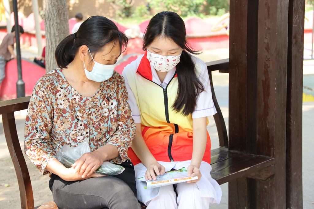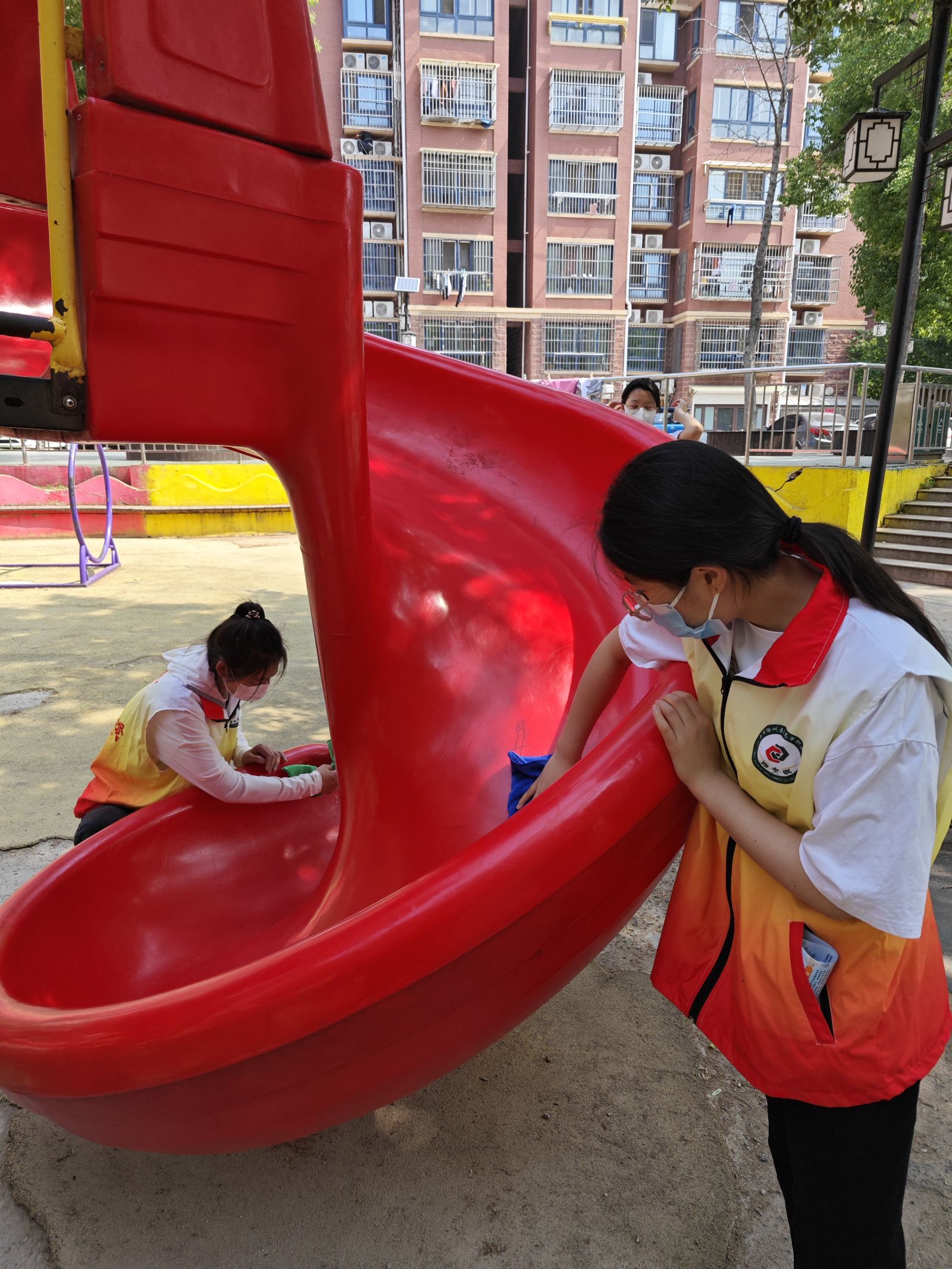 活动现场,学生志愿者们结合自身专业特点,开展了形式多样的志愿服务活动。第一小分队志愿者们为社区居民提供量血压、测血糖等健康检测服务,就居民的常见病、慢性病、急救知识进行讲解和科普,此外还对社区居民日常保健、安全用药等方面进行指导,从而提高广大人民群众安全用药意识和自身保护能力,为社区居民的健康保驾护航。第二小分队志愿者们深入绿化带内,仔细查找草皮下的垃圾,用自带的夹子将塑料袋、卫生纸、烟头等杂物清理干净,并对社区楼梯扶手、池塘护栏、公共健身器材等进行擦拭,将随意停放的电动车摆放整齐,保持社区环境的整洁。