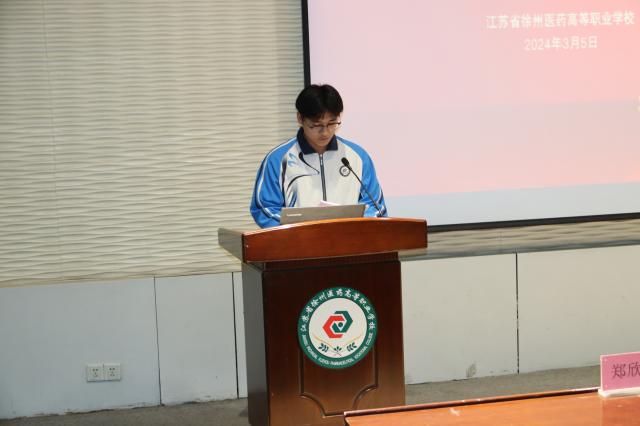 校学生会主席韩浩帅作为上一年度“学雷锋标兵”代表发言。他讲述了自己参加的志愿活动的经历,并表示在这次活动中一定会认真学习领会雷锋精神,带头开展校园、教室、宿舍卫生清扫,积极投身校内、外志愿服务活动,严格遵守各项安全规定,认真做好活动策划、组织以及开展,在奉献中体现价值,在实践中传播文明。