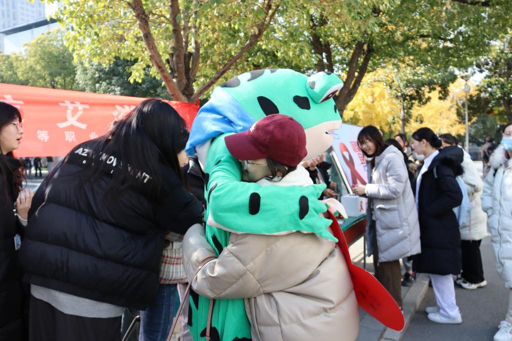 12月1日中午,校团委组织学生会开展预防艾滋病宣传活动,通过竞猜答题、佩戴红丝带、发放知识宣传单、承诺签名、“给我一个拥抱”等形式,号召青年学生积极参与艾滋病预防与控制,关注艾滋病防治,远离毒品,形成公共卫生观念,养成健康的生活方式,做自身健康第一责任人。