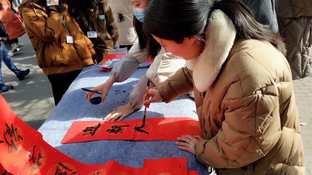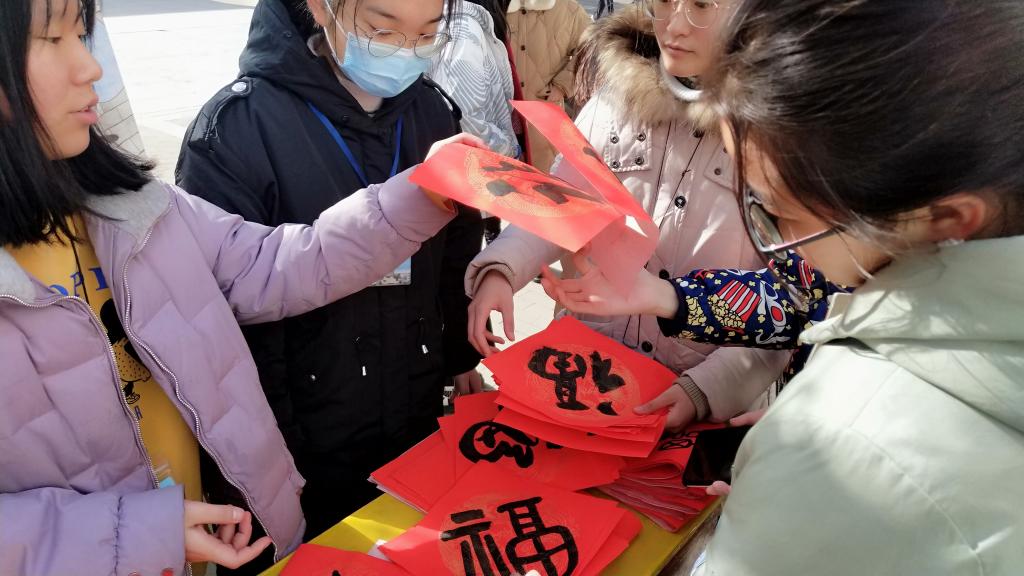 为喜迎牛年的来临,营造节日的喜庆氛围,校学生会社团部书画剪纸协会于2021年1月13日中午,在校园内举办了“新春佳节,祝福相伴”新春送祝福活动。