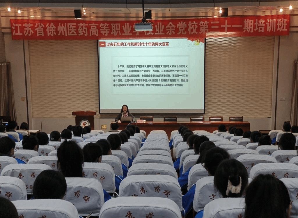 开班典礼于11月17日下午在阶梯三进行,高侠书记、护理系党支部杜培培书记、药学技术系党支部邱丽书记、制药工程系党支部赵功宝书记、学生工作处党支部凡华书记出席开班典礼,典礼由校团委王秀杰副书记主持。校党委高侠书记在仪式上发表讲话,并于开班仪式后讲授培训第一课,为学员讲解党的二十大报告要点,阐明二十大对党章的修改,表达了党对青年人的殷切希望,并鼓励学员坚持不懈向党组织靠拢。