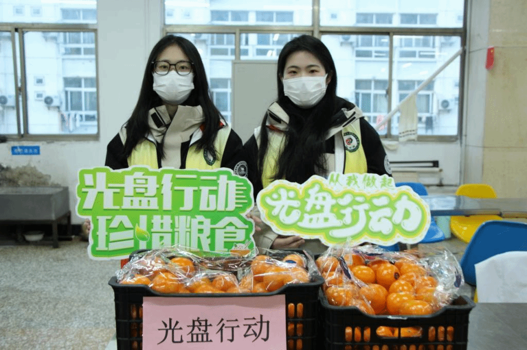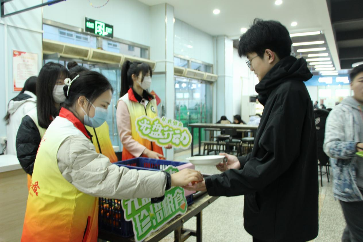 在志愿者们的宣传和引导下,同学们都用实际行动支持“光盘行动”,他们在打菜窗口根据需求挑选餐品,就餐结束后,很多同学凭借吃完的“光盘”到收餐处免费领取橘子、香蕉等光盘奖励。